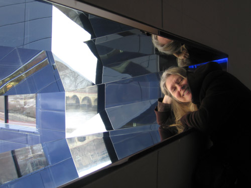Amidst the remains of the industrial revolution is a gleaming new monument to the arts, the Guthrie Theater. The foremost regional stage in the country is an engine of dramatic innovation. The Guthrie generates inspired productions that reach Broadway and the rest of the country. We took a behind the scenes tour of the big blue complex. I have been backstage in many theaters, but this is a truly sophisticated setup. Seeing how much goes into creating what the audience experiences only adds to the magic. Even the lobbies are dramatic, with mirror box views of the stone arch bridge and river.