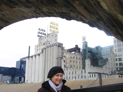 We all wandered through the ruins of an 1880 flour mill that was the origins of General Mills. The shell left after a fire has been transformed into the Mill City Museum. The intact sections let us go from floor to floor to see how the workers toiled inside the eight-story machine of the milling process.